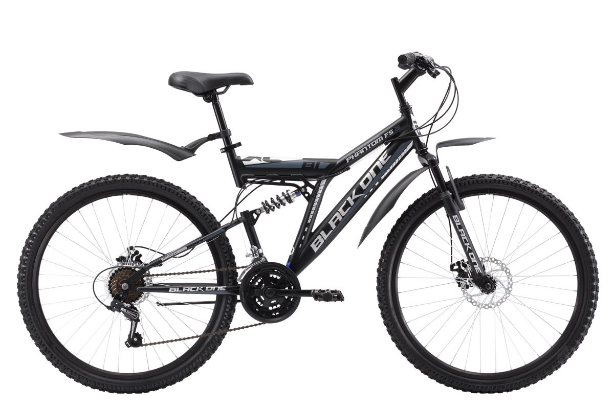 Двухподвес Black One Phantom FS 26 D, на стальной раме, простой и удобный велосипед для прогулок по загородным дорогам. Данная модель оснащена надёжными дисковыми тормозами, эффективными на любом дорожном покрытии. Модель 2017 года оборудована 21 скоростью и курковыми переключателями. 26 дюймовые колёса, на двойных алюминиевых ободах, устойчивы к «восьмёркам». Для большего комфорта велосипед укомплектован подножкой и пластиковыми крыльями. Black One Phantom FS 26 D отлично подходит для прогулочного катания и имеет оптимальное соотношение цены и технических характеристик.