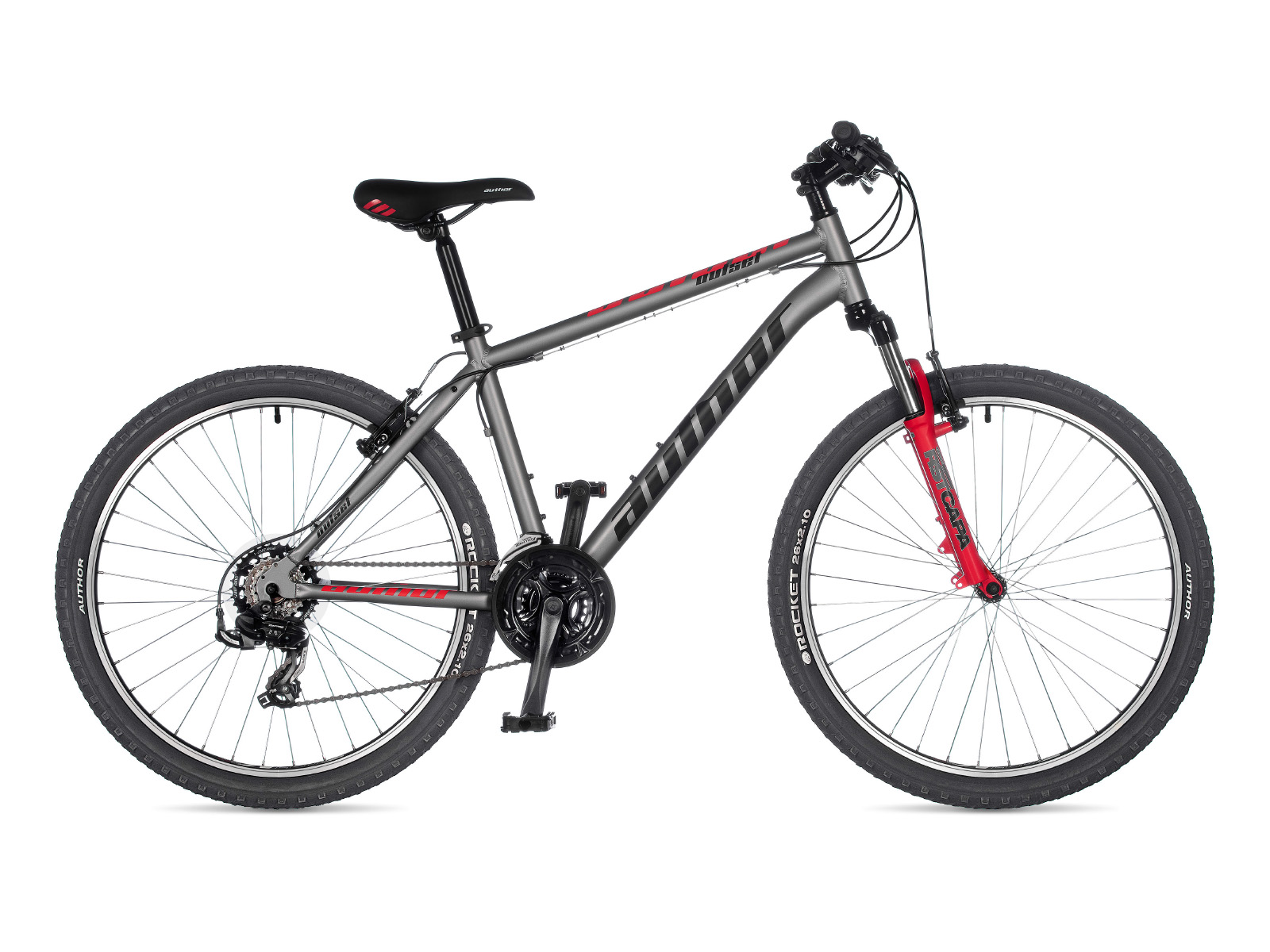 Бренд AUTHOR Модель OUTSET Год 2021 Материал рамы Алюминий (Alloy) Рама/описание alloy 6061 26" Тип вилки Амортизационная (пружина) Вилка/регулировки RST Capa 26 T (80 mm) Диаметр колес 26" Спицы steel Обода alloy 36 holes Резина AUTHOR Rocket 26" × 2.10" Тормоза Ободные (V-brake) Грипсы AUTHOR high density foam Тормоз TEKTRO V Тормозные ручки SHIMANO Уровень оборудования Любительский Шифтеры SHIMANO (21) Переключатель передний SHIMANO TY500 (34.9) Переключатель задний SHIMANO TY500 Цепь KMC Z7 Каретка VP COMP cartridge Шатуны PROWHEEL 42-34-24 teeth 170 mm cranks Количество скоростей 21 Руль steel 20 mm 640 mm Рулевая колонка PRESTINE 1-1/8" Вынос ZOOM alloy Седло AUTHOR Подседельный штырь alloy (31.6) Педали resin Втулка передняя QUANDO 36 holes Вес 14,1 kg / 19" Втулка задняя QUANDO 36 holes -