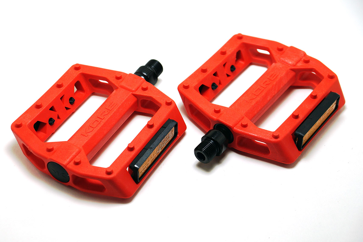 -Педали KORE RIVERA Thermo Nylon,ось сталь 9\16 ,шипы,красные,308гр